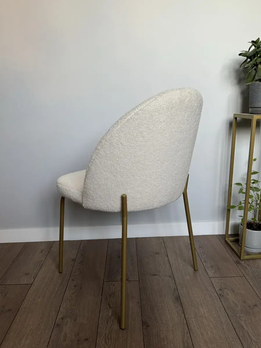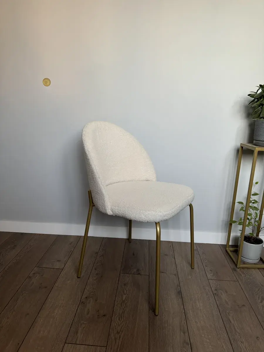 Изюминка стула — золотые ножки, которые сразу привлекают внимание. Эти ножки изготовлены из надежного металла, что гарантирует долговечность использования. Железные элементы добавляют прочности всей конструкции, а металлический каркас обеспечивает устойчивость и безопасность эксплуатации даже при нагрузке до 130 килограммов.