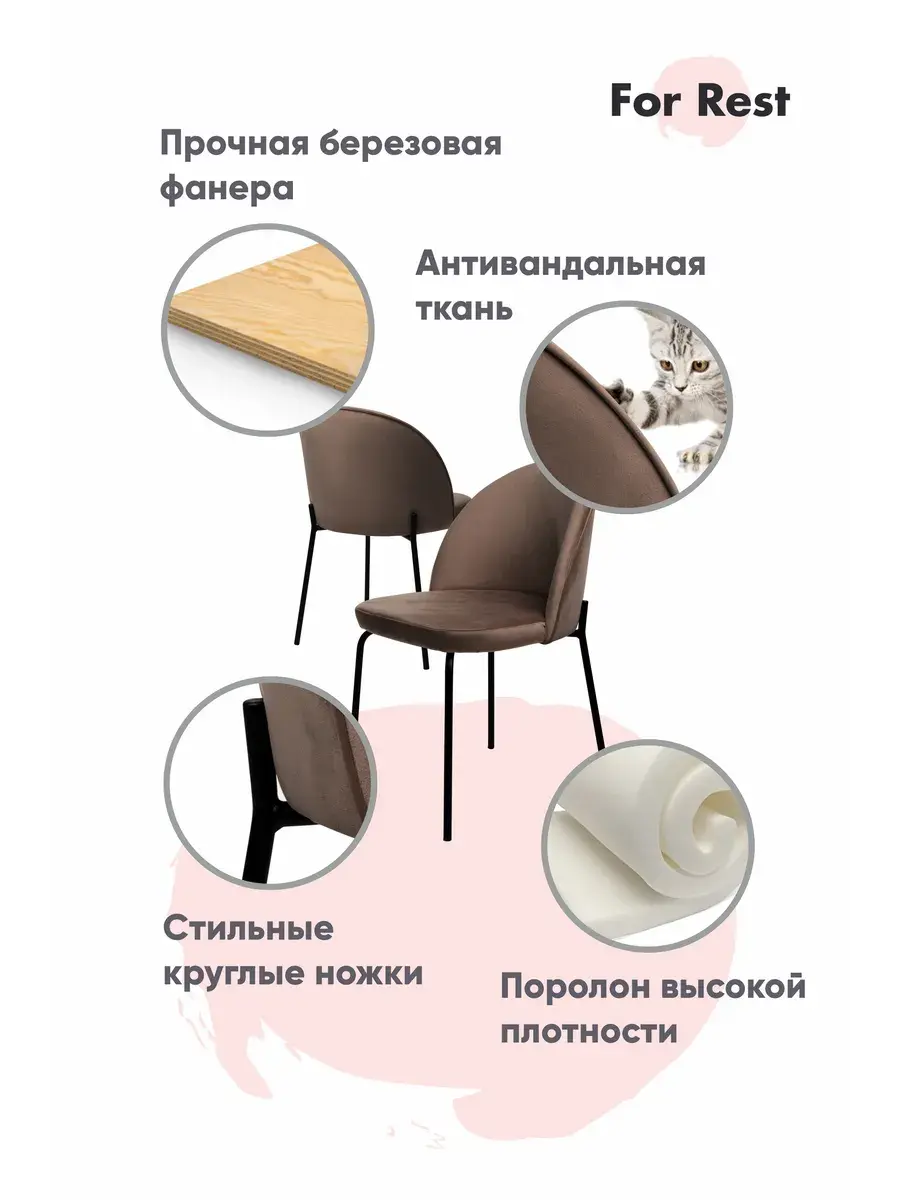 Еще одно достоинство этих стульев заключается в мягкости велюровой ткани, которая создаёт уютный комфорт при каждом прикосновении. Приятная на ощупь велюровая обивка подчеркнет стилистическое решение вашей комнаты и внесет атмосферу уюта и тепла.