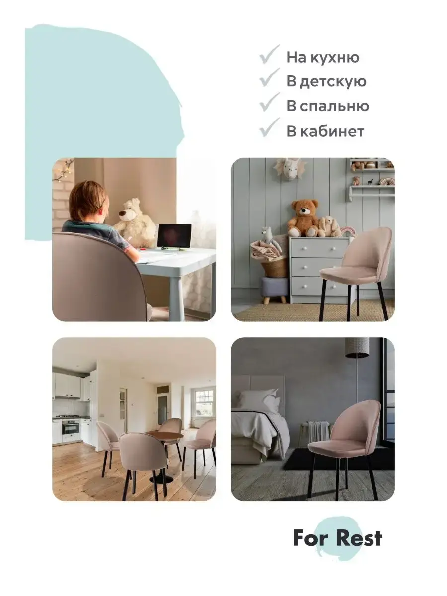 • Наши стулья будут идеально смотреться как с обеденным столом, так и с туалетным столиком. Прекрасно впишутся в интерьер жилой комнаты за письменным столом школьника, в детскую комнату, подойдут в интерьер салона красоты, конференц-зал, офис, в зал ресторана, кафе, бара или в зону ожидания клиентов.