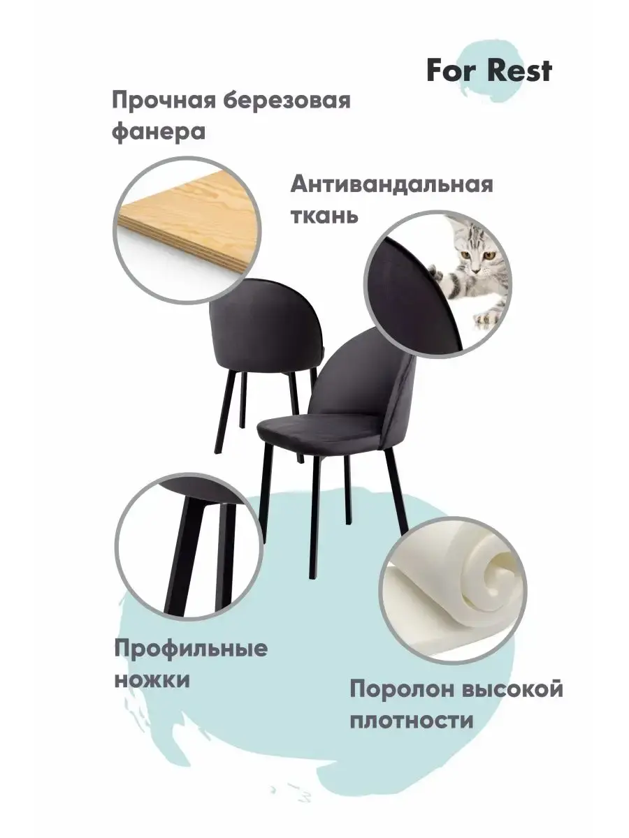 • Стулья выдерживают большую нагрузку рассчитанную на людей с разной весовой категорией до 150 кг, благодаря заглушкам ножки не поцарапают напольное покрытие;
