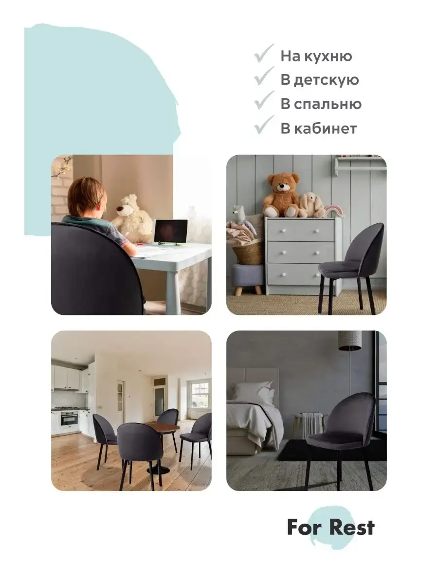 • Наши стулья будут идеально смотреться как с обеденным столом, так и с туалетным столиком. Прекрасно впишутся в интерьер жилой комнаты за письменным столом школьника, в детскую комнату, подойдут в интерьер салона красоты, конференц-зал, офис, в зал ресторана, кафе, бара или в зону ожидания клиентов.
