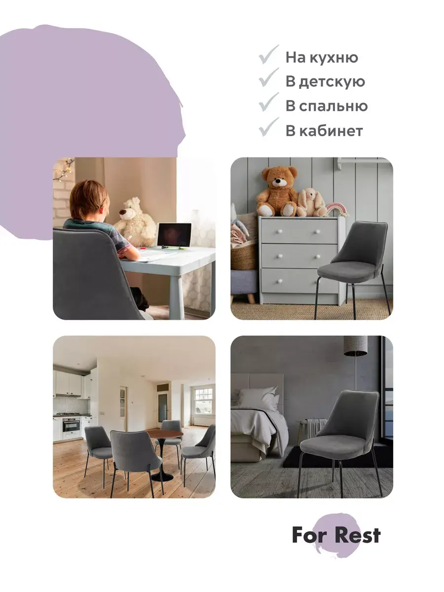 • Наши стулья будут идеально смотреться как с обеденным столом, так и с туалетным столиком. Прекрасно впишутся в интерьер жилой комнаты за письменным столом школьника, в детскую комнату, подойдут в интерьер салона красоты, конференц-зал, офис, в зал ресторана, кафе, бара или в зону ожидания клиентов.