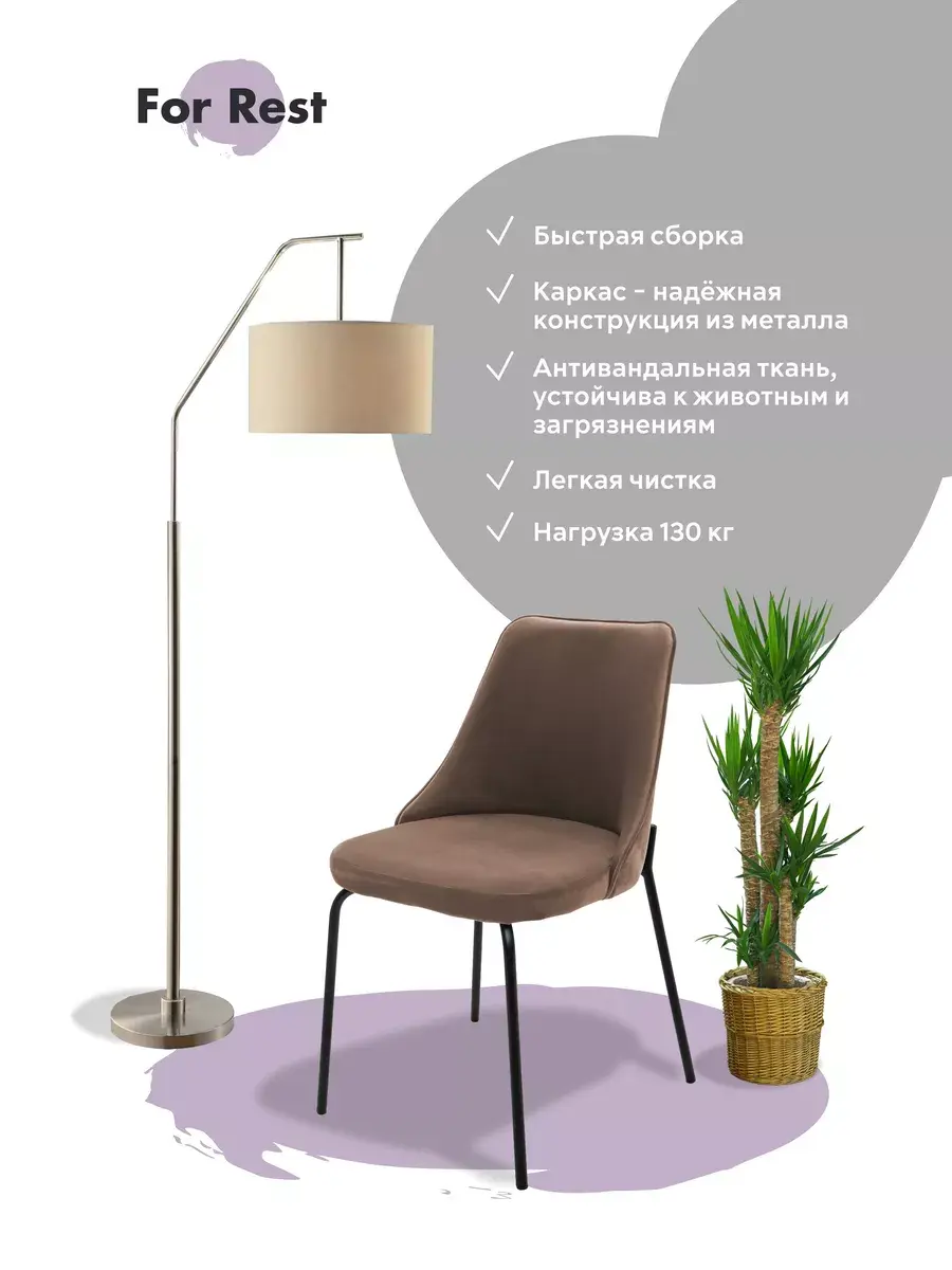 Мягкий, уютный, мебельный бархат добавит уюта в ваш интерьер. Собственное производство стульев в РФ.
