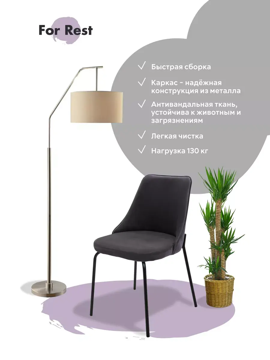 Мягкие и удобные стулья для кухни, кафе или салона красоты! Отличное решение в детскую комнату для школьника. Металлический каркас из толстостенного металла надежно прослужит в эксплуатации, мебельный мягкий антивандальный велюр отлично моется едва влажной тряпочкой.