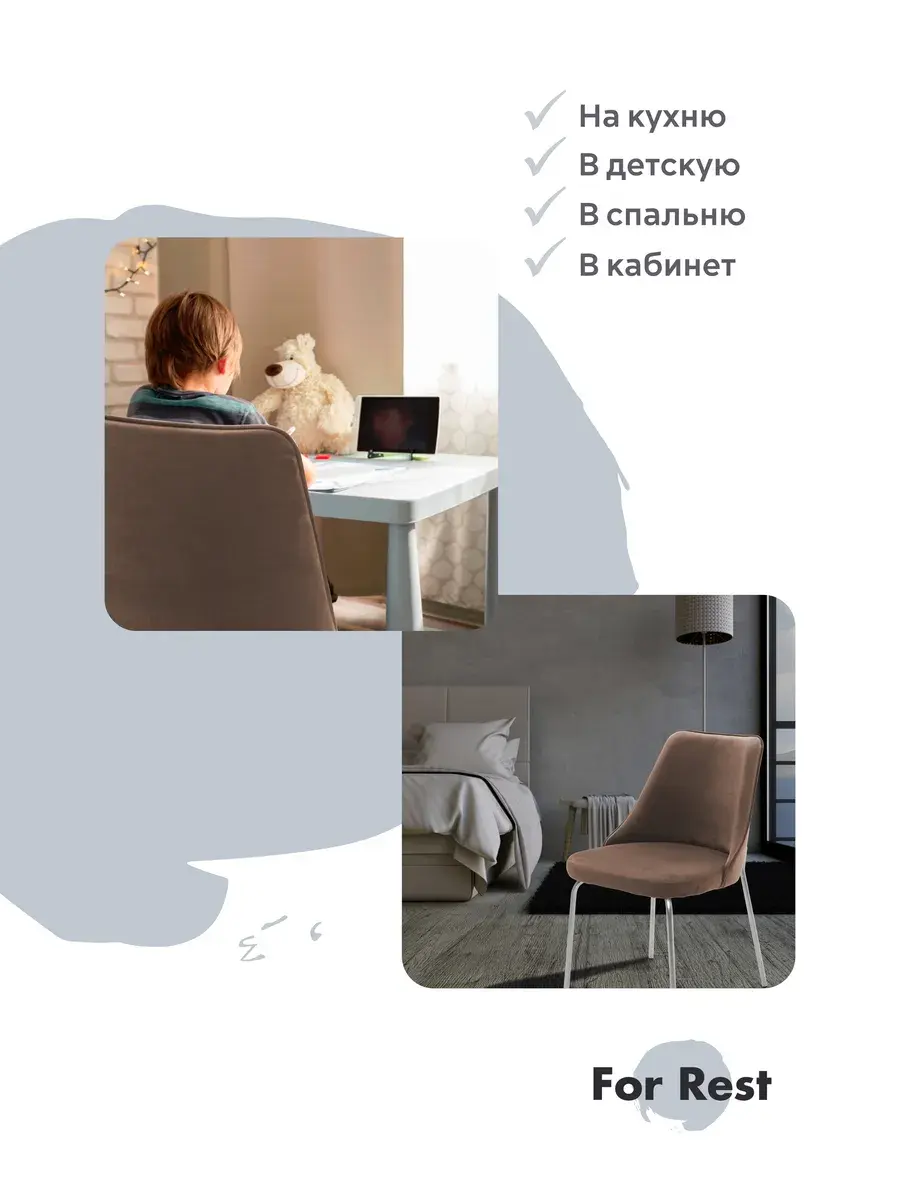 Мягкие и удобные стулья для кухни, кафе или салона красоты! Отличное решение в детскую комнату для школьника. Металлический каркас из толстостенного металла надежно прослужит в эксплуатации, мебельный мягкий антивандальный велюр отлично моется едва влажной тряпочкой.