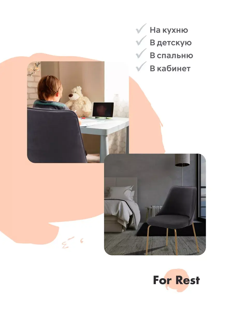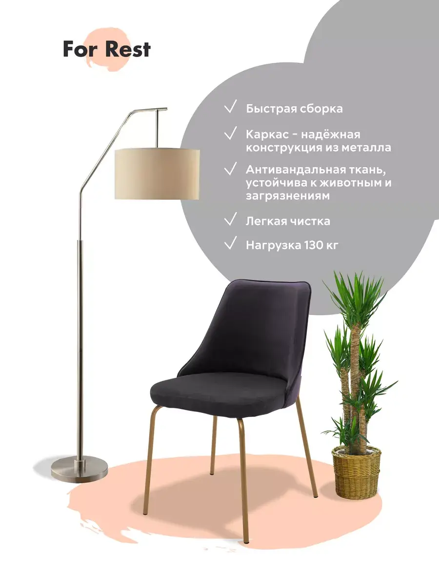 Мягкие и удобные стулья для кухни, кафе или салона красоты! Отличное решение в детскую комнату для школьника. Металлический каркас из толстостенного металла надежно прослужит в эксплуатации, мебельный мягкий антивандальный велюр отлично моется едва влажной тряпочкой.