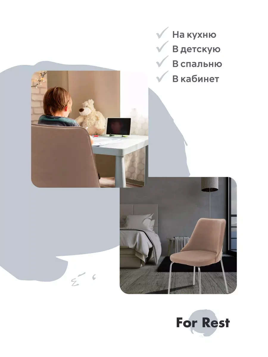 • Наши стулья будут идеально смотреться как с обеденным столом, так и с туалетным столиком. Прекрасно впишутся в интерьер жилой комнаты за письменным столом школьника, в детскую комнату, подойдут в интерьер салона красоты, конференц-зал, офис, в зал ресторана, кафе, бара или в зону ожидания клиентов.
