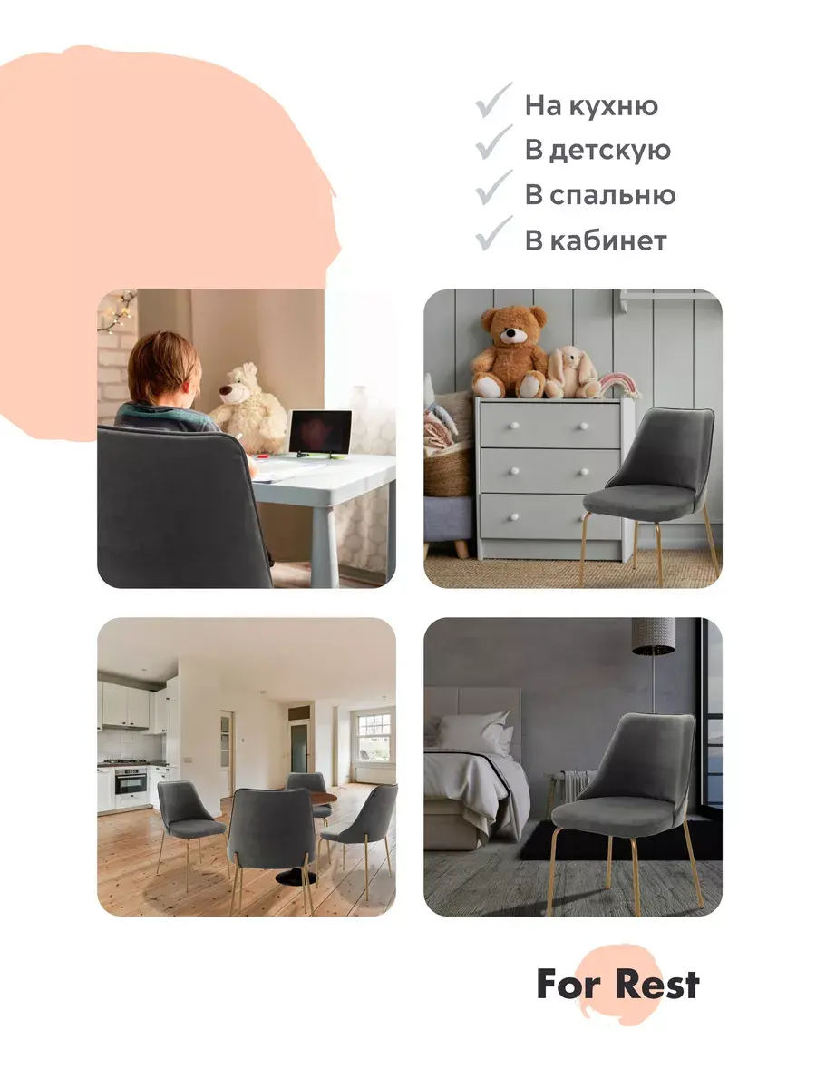 Мягкие и удобные стулья для кухни, кафе или салона красоты! Отличное решение в детскую комнату для школьника. Металлический каркас из толстостенного металла надежно прослужит в эксплуатации, мебельный мягкий антивандальный велюр отлично моется едва влажной тряпочкой.