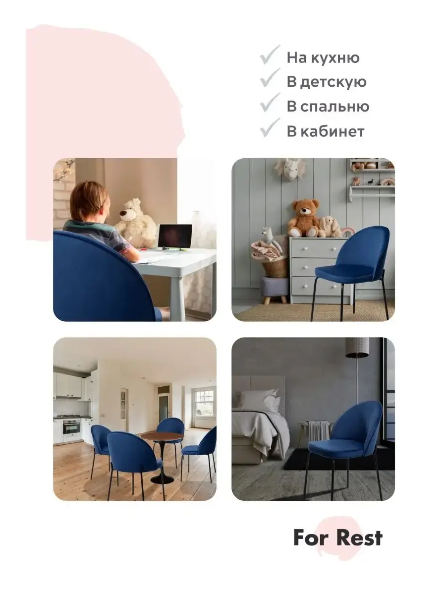 • Наши стулья будут идеально смотреться как с обеденным столом, так и с туалетным столиком. Прекрасно впишутся в интерьер жилой комнаты за письменным столом школьника, в детскую комнату, подойдут в интерьер салона красоты, конференц-зал, офис, в зал ресторана, кафе, бара или в зону ожидания клиентов.