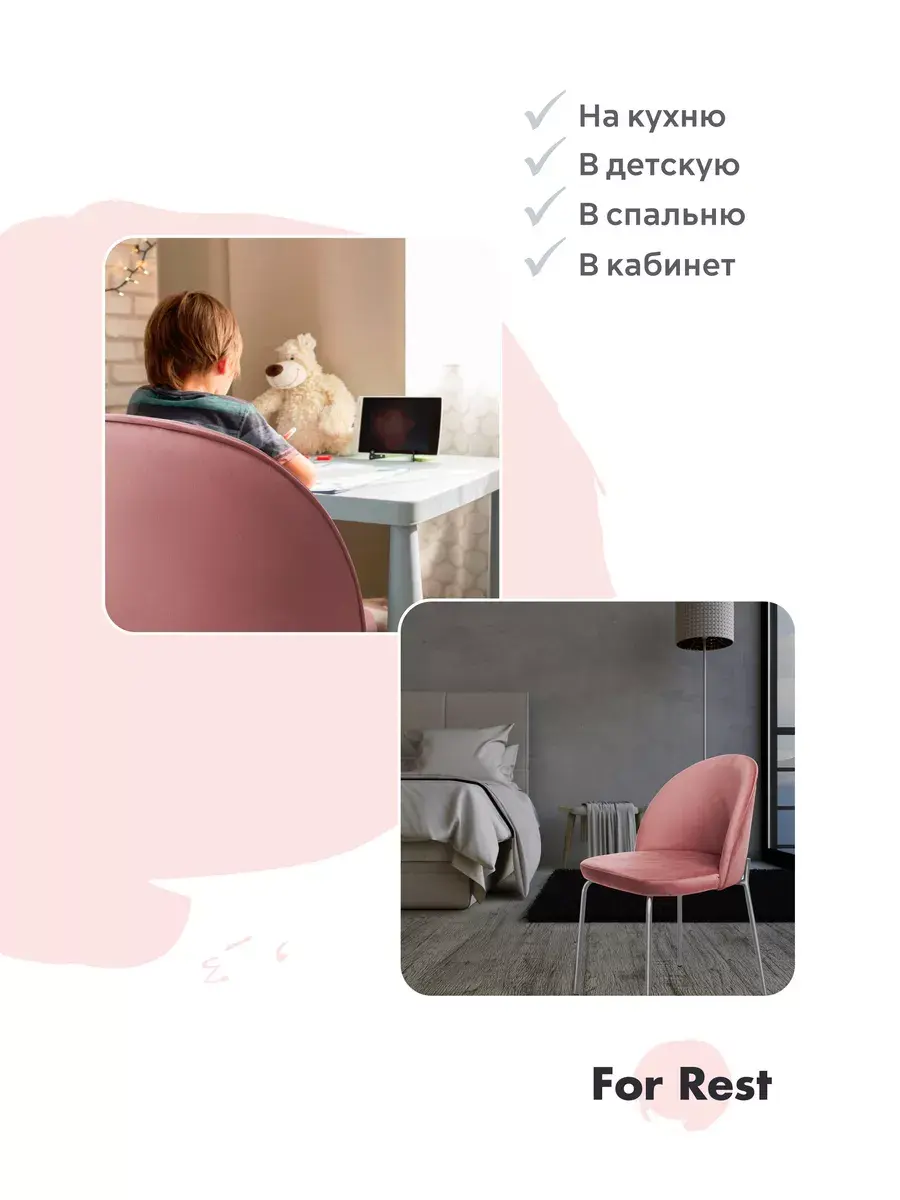 • Наши стулья будут идеально смотреться как с обеденным столом, так и с туалетным столиком. Прекрасно впишутся в интерьер жилой комнаты за письменным столом школьника, в детскую комнату, подойдут в интерьер салона красоты, конференц-зал, офис, в зал ресторана, кафе, бара или в зону ожидания клиентов.