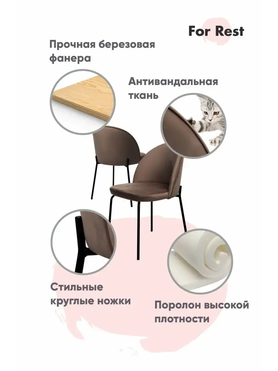 • Стулья выдерживают большую нагрузку рассчитанную на людей с разной весовой категорией до 130 кг, благодаря заглушкам ножки не поцарапают напольное покрытие;