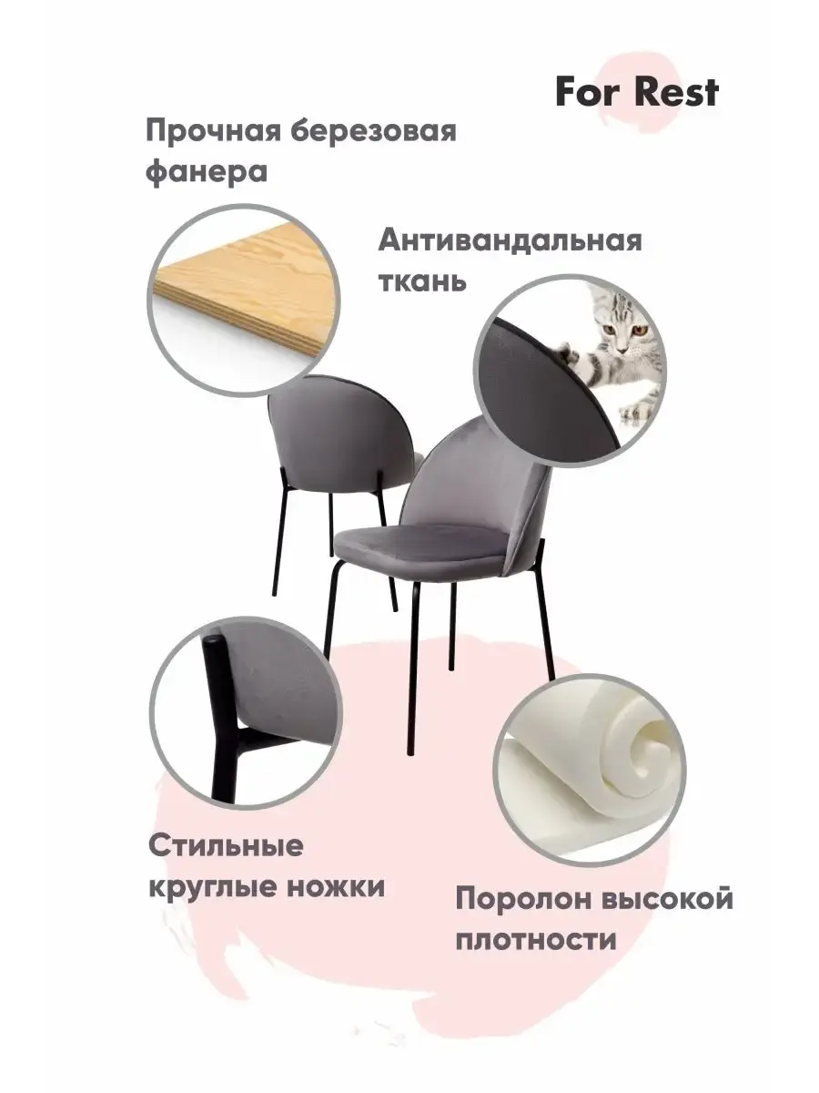 • Стулья выдерживают большую нагрузку рассчитанную на людей с разной весовой категорией до 130 кг, благодаря заглушкам ножки не поцарапают напольное покрытие;