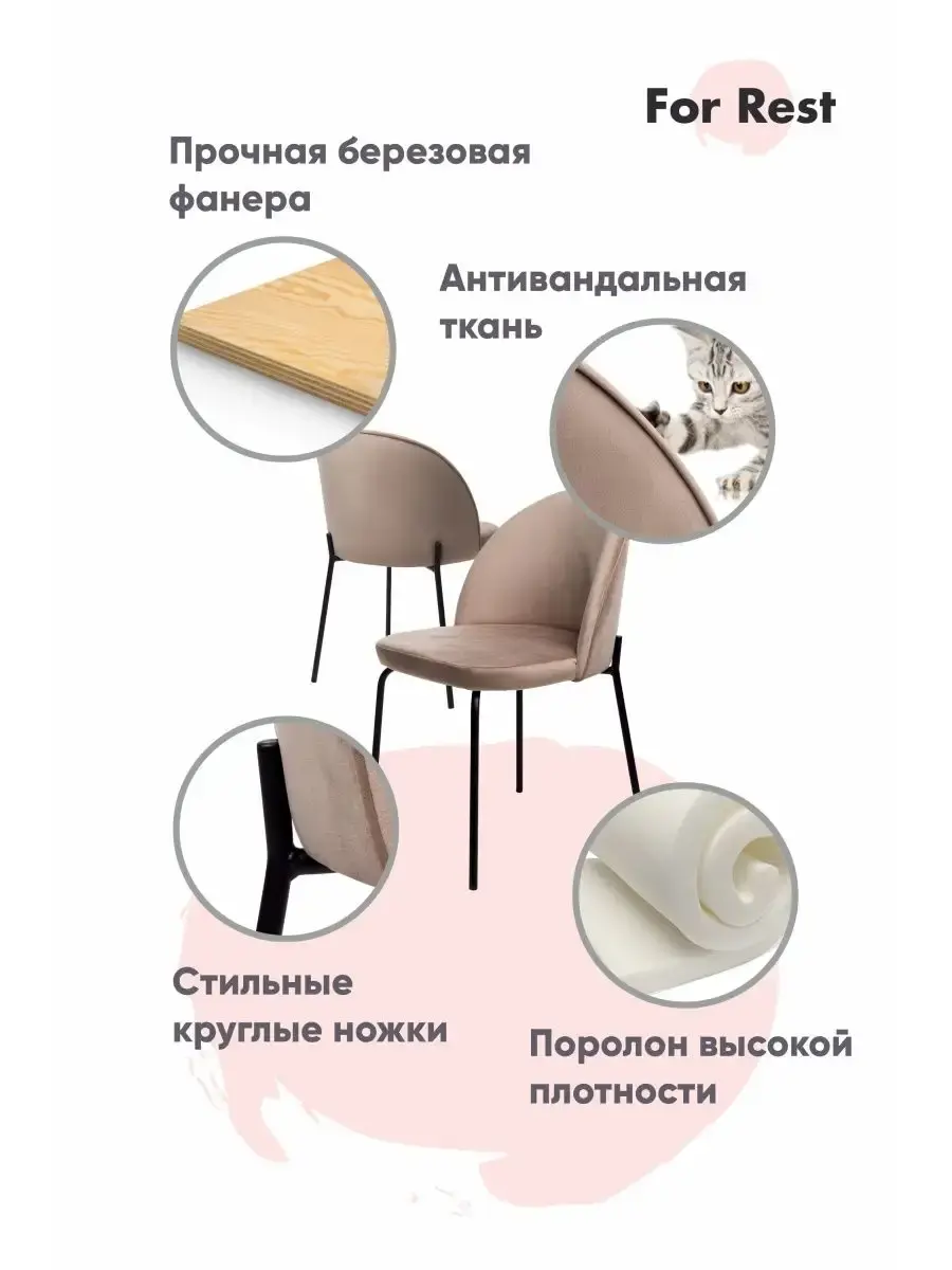 • Стулья выдерживают большую нагрузку рассчитанную на людей с разной весовой категорией до 130 кг, благодаря заглушкам ножки не поцарапают напольное покрытие;