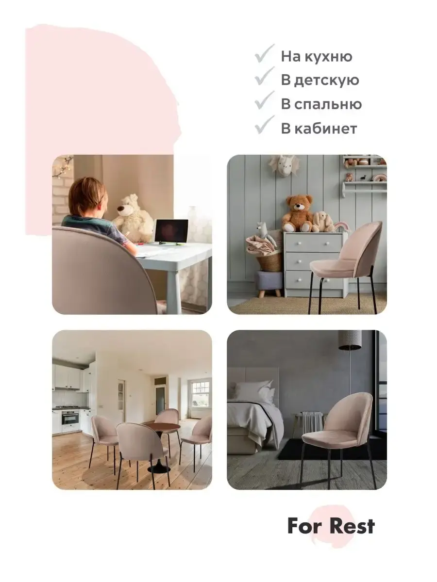 • Наши стулья будут идеально смотреться как с обеденным столом, так и с туалетным столиком. Прекрасно впишутся в интерьер жилой комнаты за письменным столом школьника, в детскую комнату, подойдут в интерьер салона красоты, конференц-зал, офис, в зал ресторана, кафе, бара или в зону ожидания клиентов.