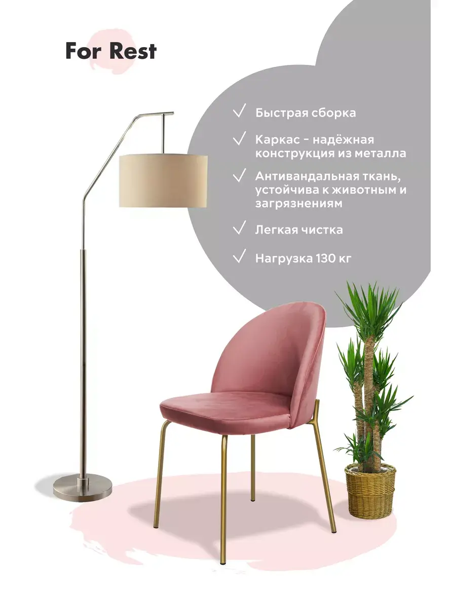Еще одно достоинство этих стульев заключается в мягкости велюровой ткани, которая создаёт уютный комфорт при каждом прикосновении. Приятная на ощупь велюровая обивка подчеркнет стилистическое решение вашей комнаты и внесет атмосферу уюта и тепла.