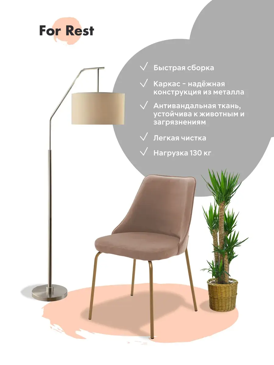Эти стулья не только приятны на ощупь благодаря велюровой ткани, но и обладают высокой прочностью. Антивандальная ткань легко очищается и сохраняет свежесть, что делает их идеальным выбором для активной жизни семьи. Надёжный каркас металлических ножек обеспечивает долговечность использования.