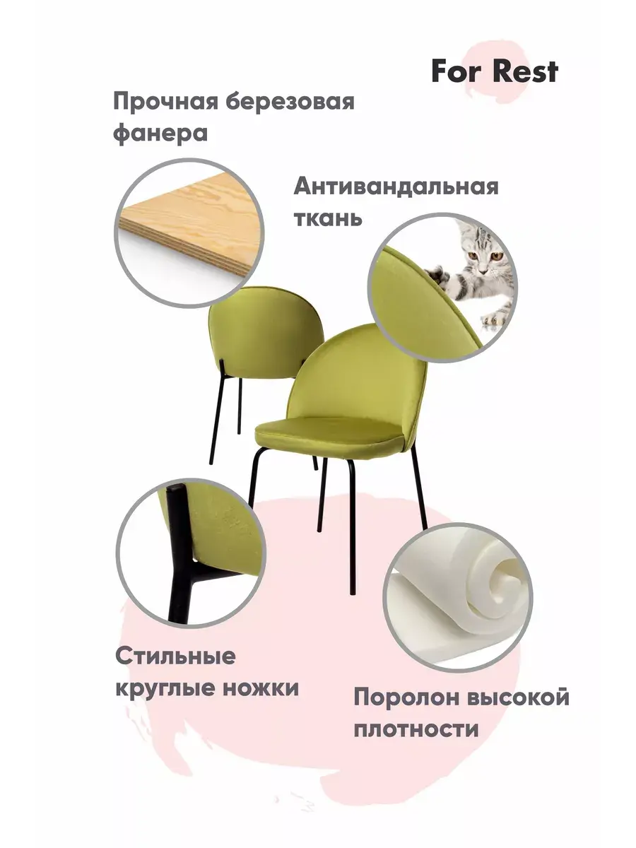 Преимуществом этих мягких стульев является универсальный дизайн, надёжный металлический каркас ножек, антивандальная ткань, устойчивая к загрязнениям и повреждениям. Благодаря этому, вы можете не беспокоиться о случайных пятнах или износе. В Комплект входят стулья мягкие 2 шт которые легко впишутся в любой интерьер — как в кухонное пространство, так и в гостиную.